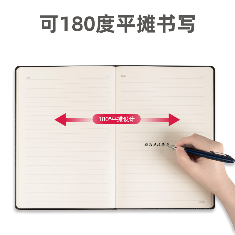 得力(deli)16K软面皮面本250mm*175mm(黑) NO.7996