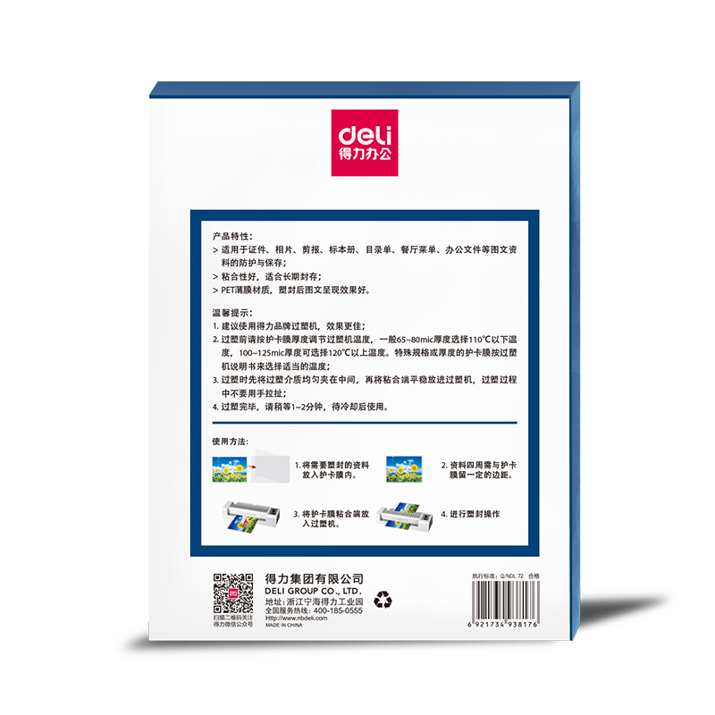 得力(deli) 塑封膜 100张/盒 NO.14300