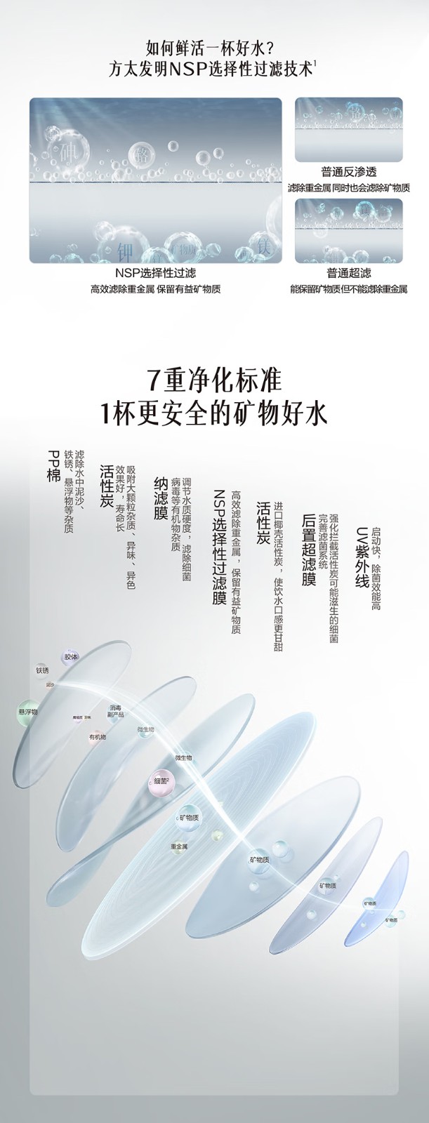 *NSP选择性过滤技术 高效滤除重金属 保留有益矿物质 矿物好水 健康畅饮