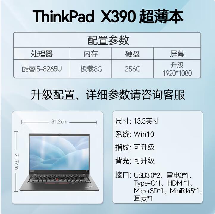 联想办公笔记本电脑(i5-8代/8G/256 SSD/集显/14寸
