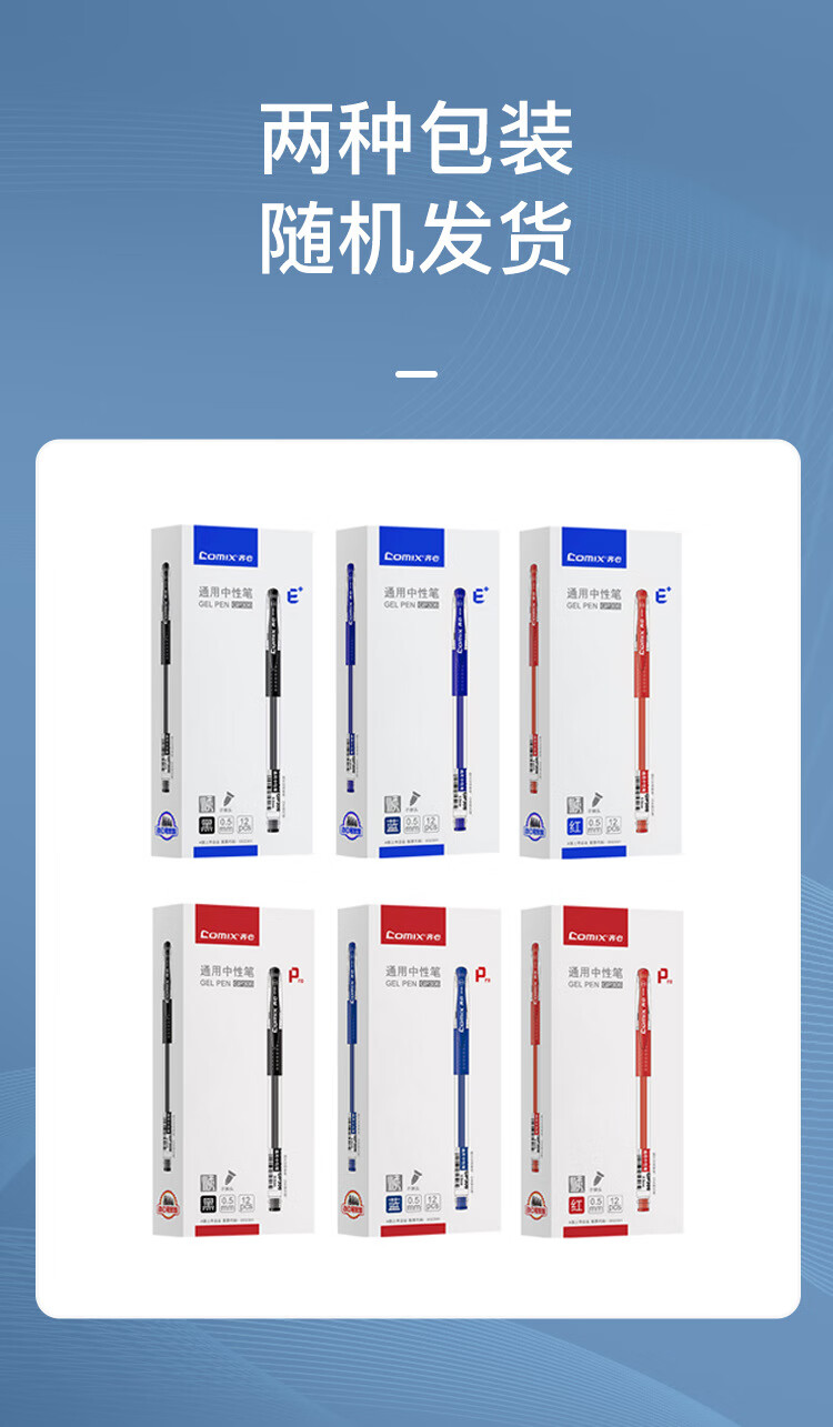 齐心(COMIX)拔帽中性笔(0.5mm)(12支/盒)5盒/组 三色可选 NO.GP306