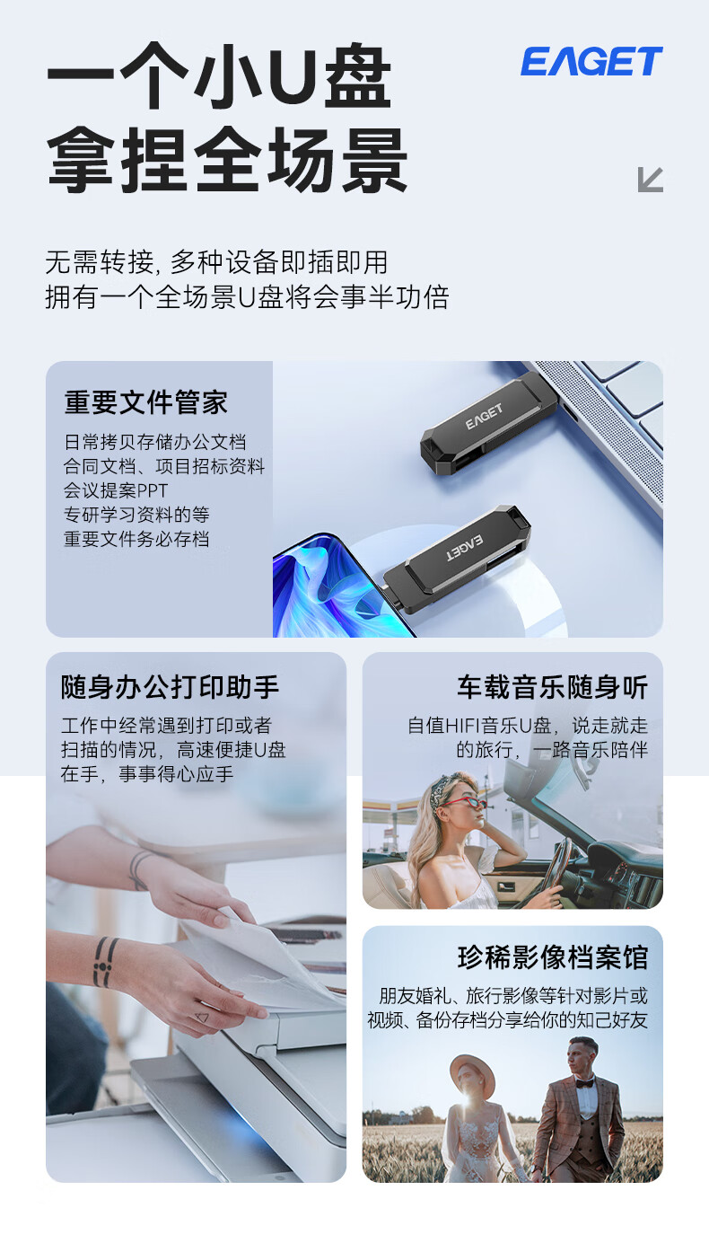 忆捷(EAGET)U盘1个 双接口闪存盘 NO.CF66